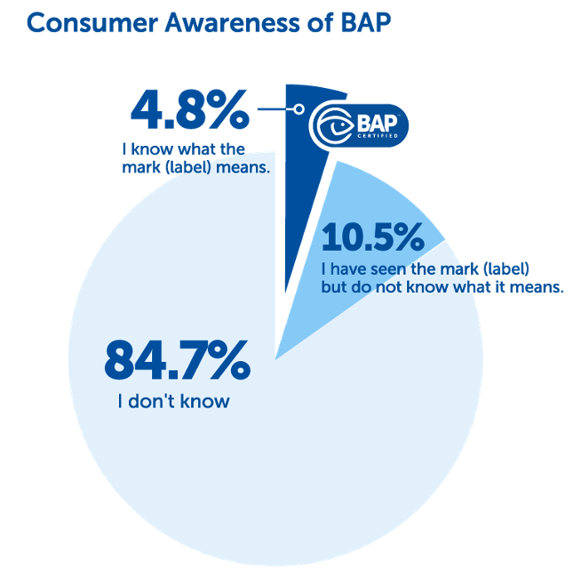 The study also found that about 15% of consumers have seen the BAP label before, with 4.8% of consumers saying they know what the label means.